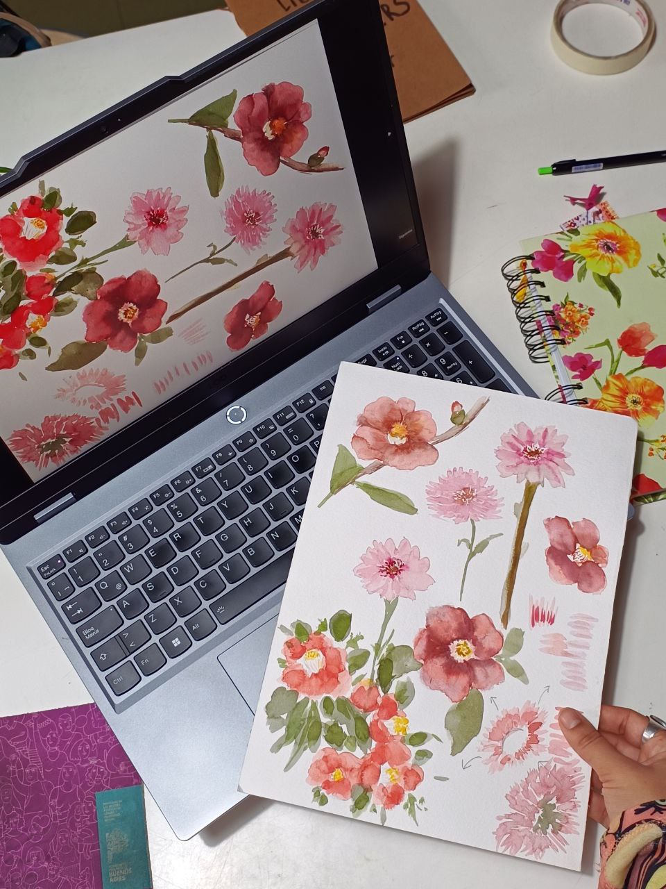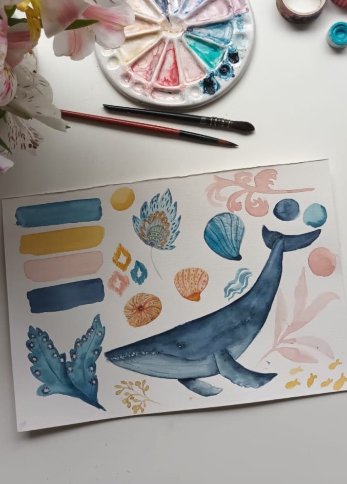 En 2020, decidí dar un gran paso: abrí mi propia tienda online y comencé a desarrollarme como ilustradora independiente. Además, quise compartir todo lo que había aprendido con otras personas. Así nacieron mis talleres de acuarela que imparto tanto de manera presencial como online.