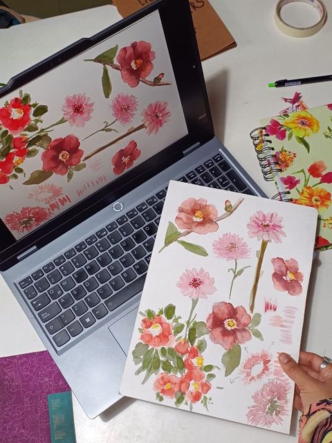 Luego de AÑOS de práctica y aprendizajes, cree mi propio método para que sea ameno el proceso. Aplicando diferentes modos, según lo requiera lo que haya pintado. Sí, a mano. En acrílico, acuarelas (nos centramos en ella sobre todo), lapices de colores, crayones.